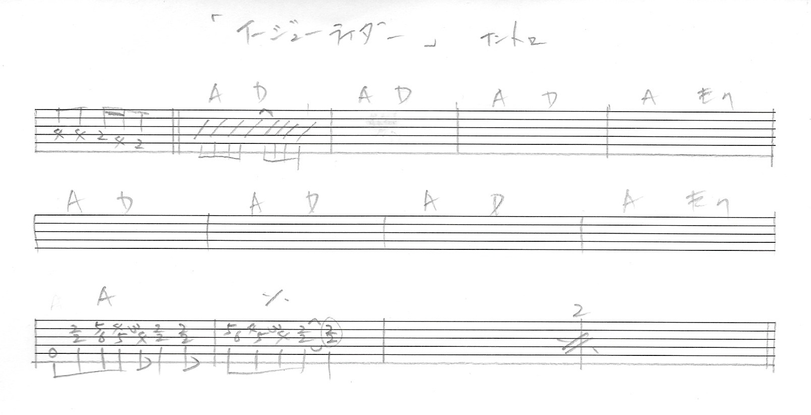 奥田民生”イージューライダー”のイントロパートのタブ譜です。
